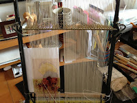 My fingers felt good enough recently to start tapestry again. I had two warps set up on my baby Shannock tapestry loom to weave some Kaibab squirrels; one with the warp vertical and the other with the warp horizontal. The pieces are but 5 by 7 inches but a fairly slow weave at 14 epi and single silk wefts. When I planned this tapestry way back when I wanted to weave a fairly realistic squirrel and see if I liked the result better with the warp going vertical or horizontal.